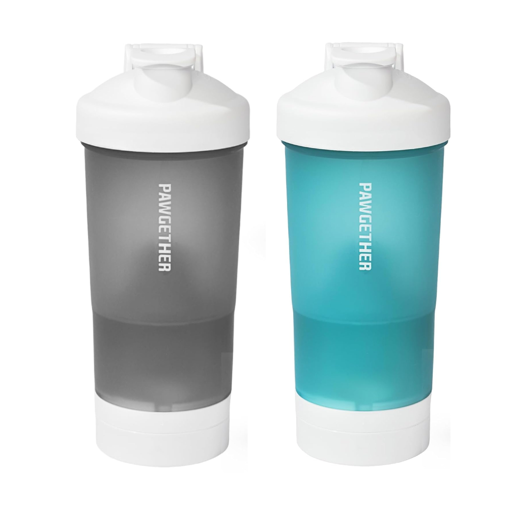 PAWGETHER water bottle for dogs on the go, leak proof portable dog water bottle with poop bagspuppy portable water bottle for dogs travel bottle with bowl doggie water bottle with poop bag holder detachable bowl drinking feeder for pets outdoor walking, hiking, travel, puppy essentials 15oz for water 5oz for food green and grey