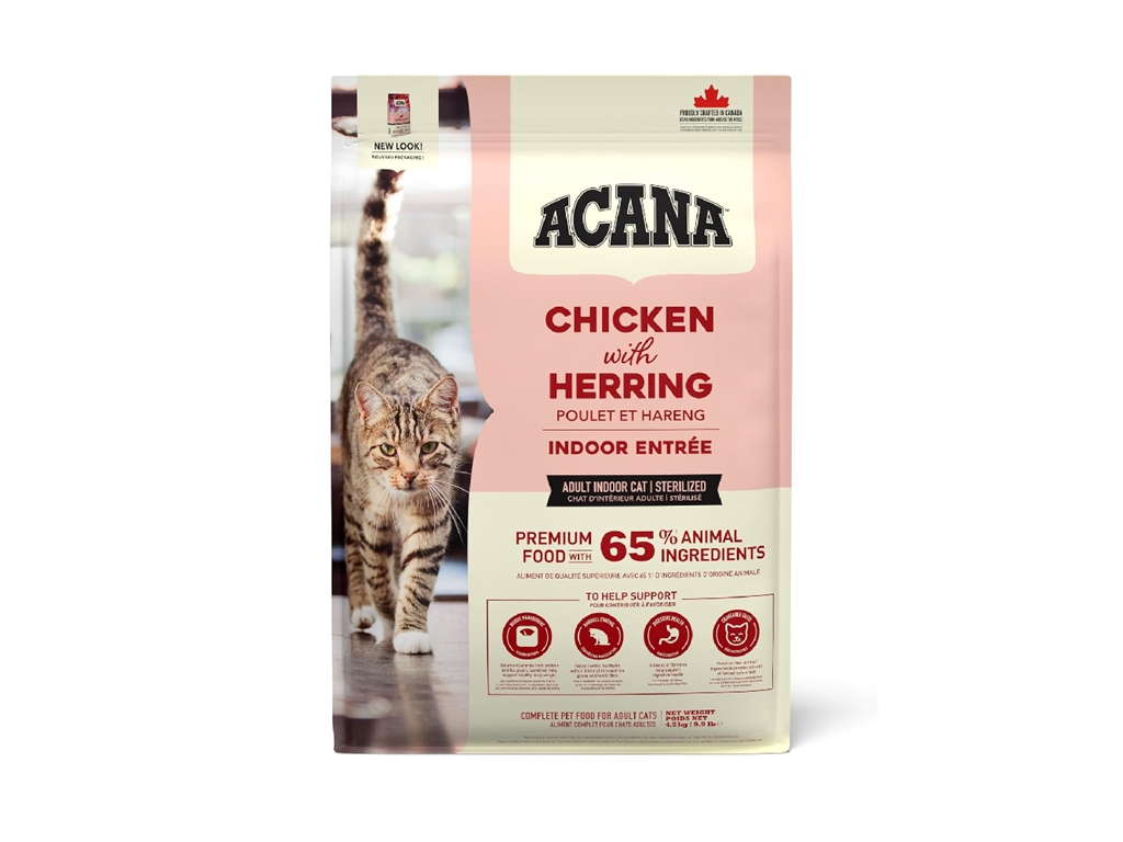 Specially crafted for your indoor cat, our ACANA™ Indoor Entrée Recipe is uniquely suited to the needs of your domesticated feline. Rich with 65% quality animal ingredients1 including fresh or raw free-run2 chicken and turkey, and whole herring, Indoor Entrée has the animal protein your cat needs to be their best. This nutrient-dense recipe also helps support key health benefits for your indoor cat, including weight management, hairball control, and digestive health. Nurture your indoor feline with a recipe tailored to keep them healthy and happy with ACANA Indoor Entrée!