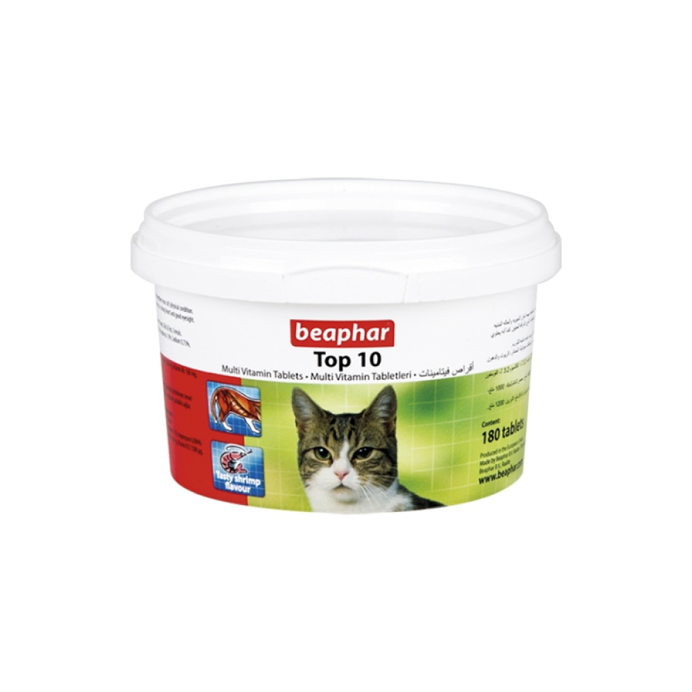 Top 10 is a food supplement for cats. It contains essential vitamins, minerals and trace elements that promote vitality and strengthen a cat's physical condition. Top 10 encourages the natural development of bones and teeth of young cats and ensures a glossy coat and bright eyes. It also contains taurine for a strong heart and good eyesight.