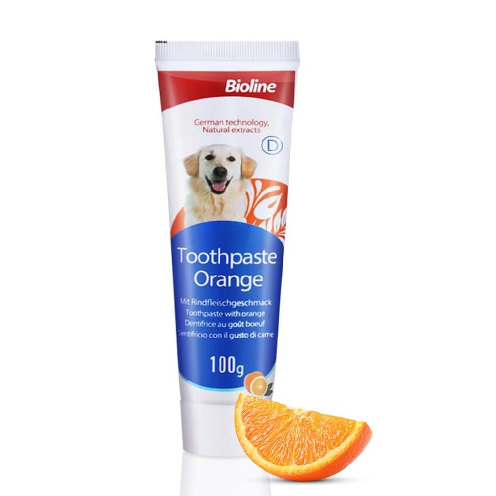 Bioline Toothpaste for Dogs in a delightful orange flavor makes dental care enjoyable and effective. This toothpaste helps prevent tartar buildup, enhances dental hygiene, and ensures long-lasting fresh breath.