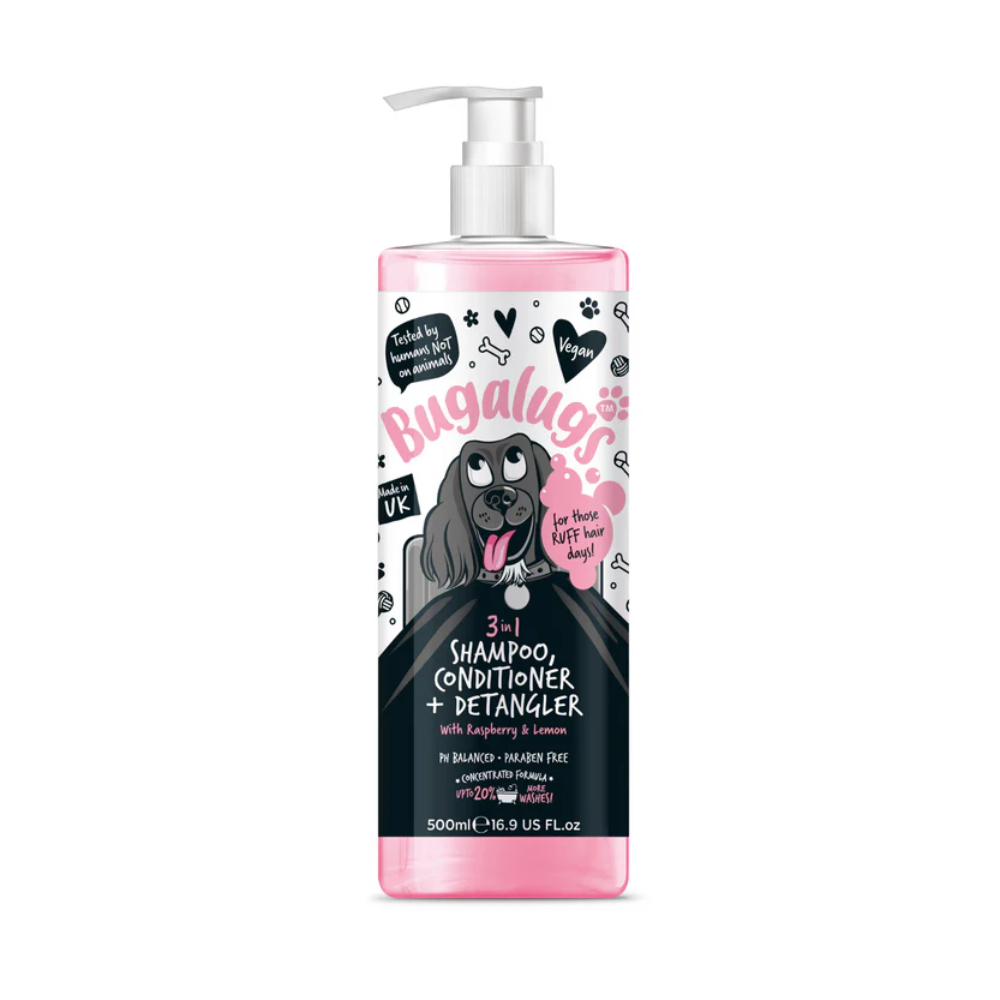 HomeShopDog ShampooBugalugs 3 in 1 Raspberry & Lemon Shampoo Conditioner & Detangler for Dogs – 500ml