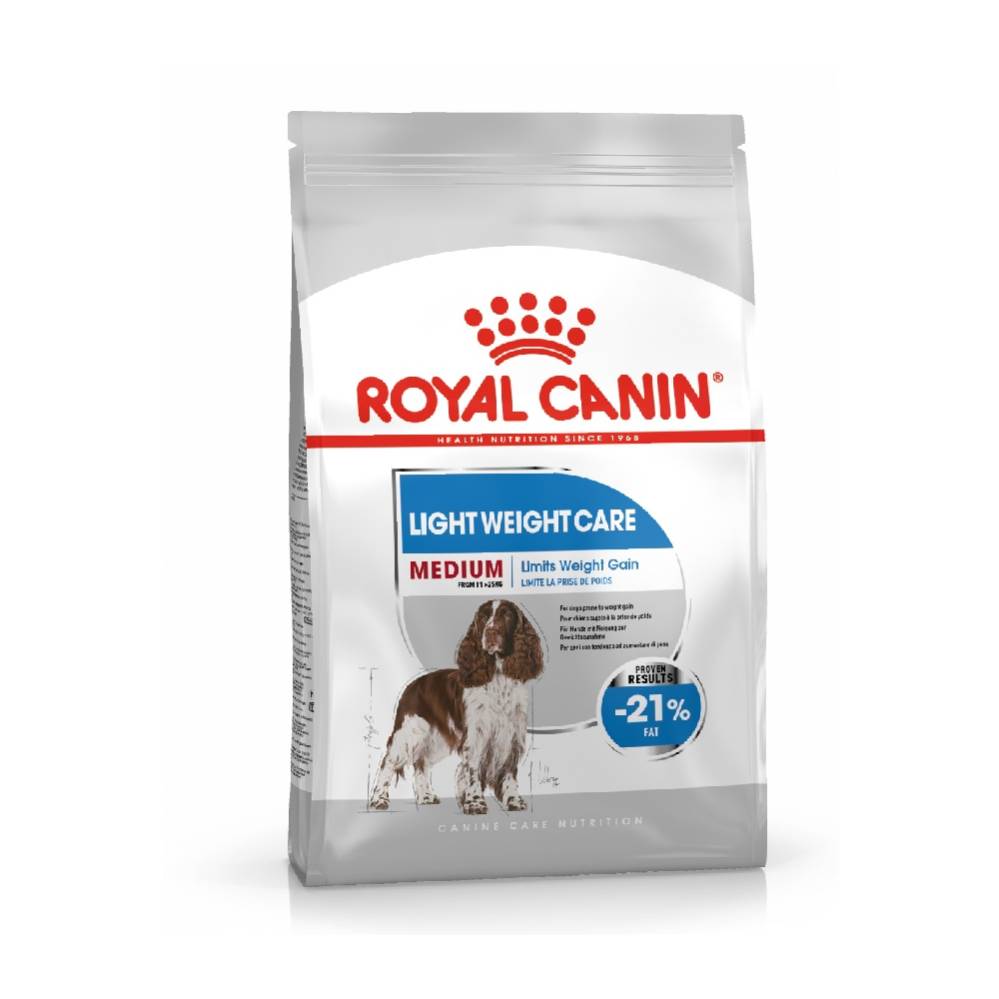 The Royal Canin Medium Light Weight Care is a complete feed for adult and mature medium breed dogs over 12 months old (from 11 to 25 kg) with a tendency to gain weight.