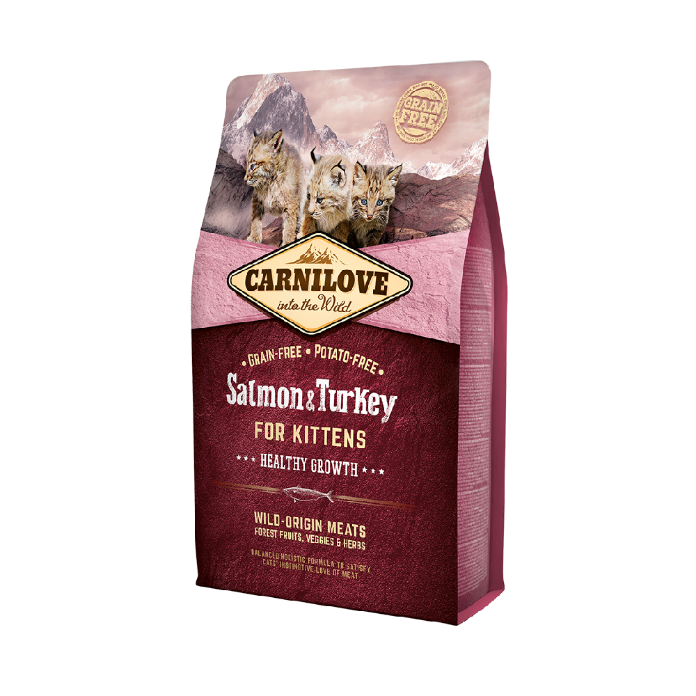 With kittens, it is of critical importance to choose food rich in quality proteins, fats, vitamins, and essential nutrients for healthy growth and optimal body development. Carnilove Salmon & Turkey for Kittens has been formulated with respect for the natural composition of the feline diet. The recipe is based on salmon and turkey, sources of essential amino acids, which in combination with forests fruits, vegetables, and herbs provide essential nutrients, vitamins, minerals, and antioxidants every day for proper development of the skeleton, muscles, and natural immunity.