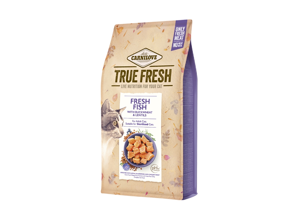 The formula contains a high proportion of fresh fish from fisheries and local sources. The unique production method preserves the original properties of the ingredients for an entirely new and delicious sensory experience that satisfies cats’ natural instincts. Because the meat is processed fresh, true fresh provides excellent palatability, digestibility, and a more natural form of nutrition. Salmon oil has an anti-inflammatory effect that supports your cat’s coat and skin while potentially decreasing the development of skin allergies. The omega-3 fatty acids EPA and DHA from fresh fish, salmon oil, and lemna are highly beneficial for maintaining a healthy body. They also help slow skin ageing, support heart health, and ensure proper development of vision and the central nervous system. Cranberries, sea buckthorn, and blueberries help to keep optimal urinary pH and healthy urinary tract -Fresh fish, lemna, and salmon oil – excellent sources of omega-3 fatty acids for healthy skin and normal brain and heart function -Salmon oil has an anti-inflammatory effect that supports your cat’s coat and skin while potentially decreasing the development of skin allergies Cranberries, sea buckthorn, blueberries, red lentils, and lemna are an excellent source of antioxidants, which protect cells against free radicals.