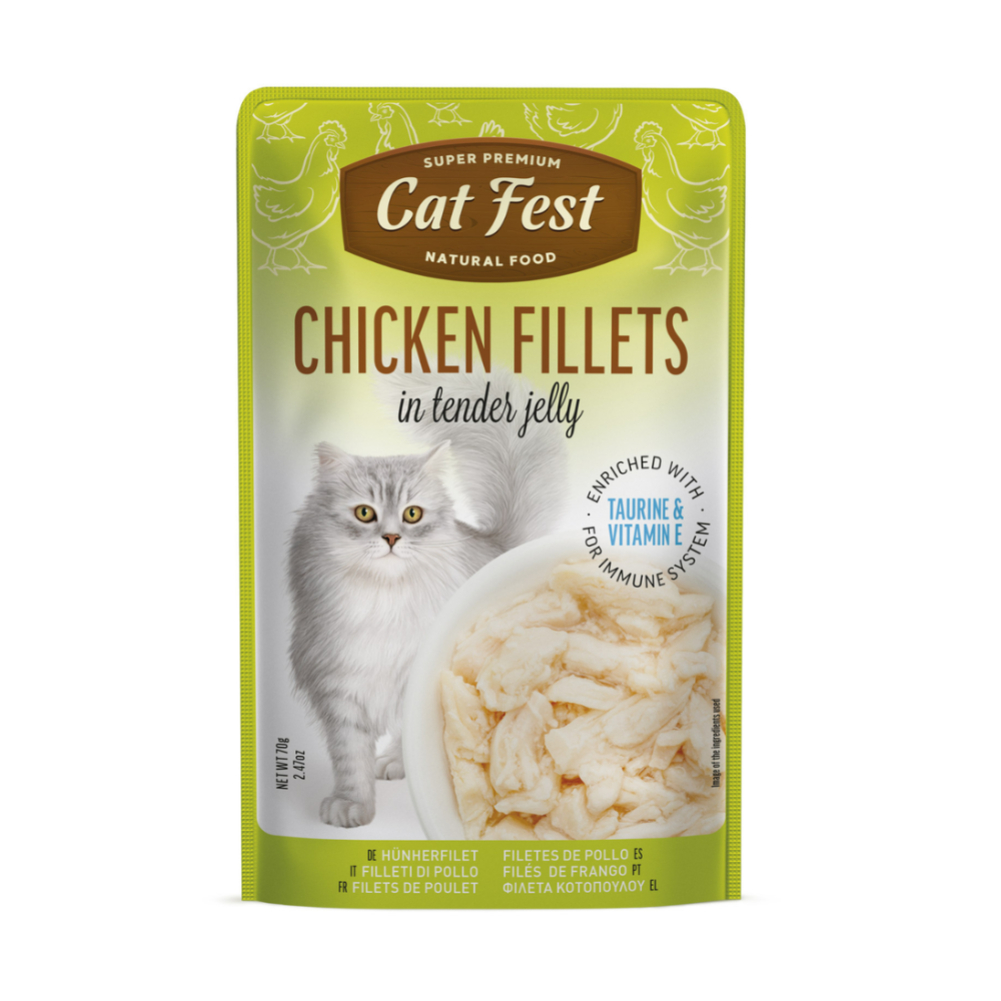 Juicy pieces of chicken in real jelly make the perfect treat for your cat, created without unnecessary additives. The natural taste and tender texture of this dish will delight even the most selective pets, providing them with energy and a good mood for the entire day. Served as a complementary feed.