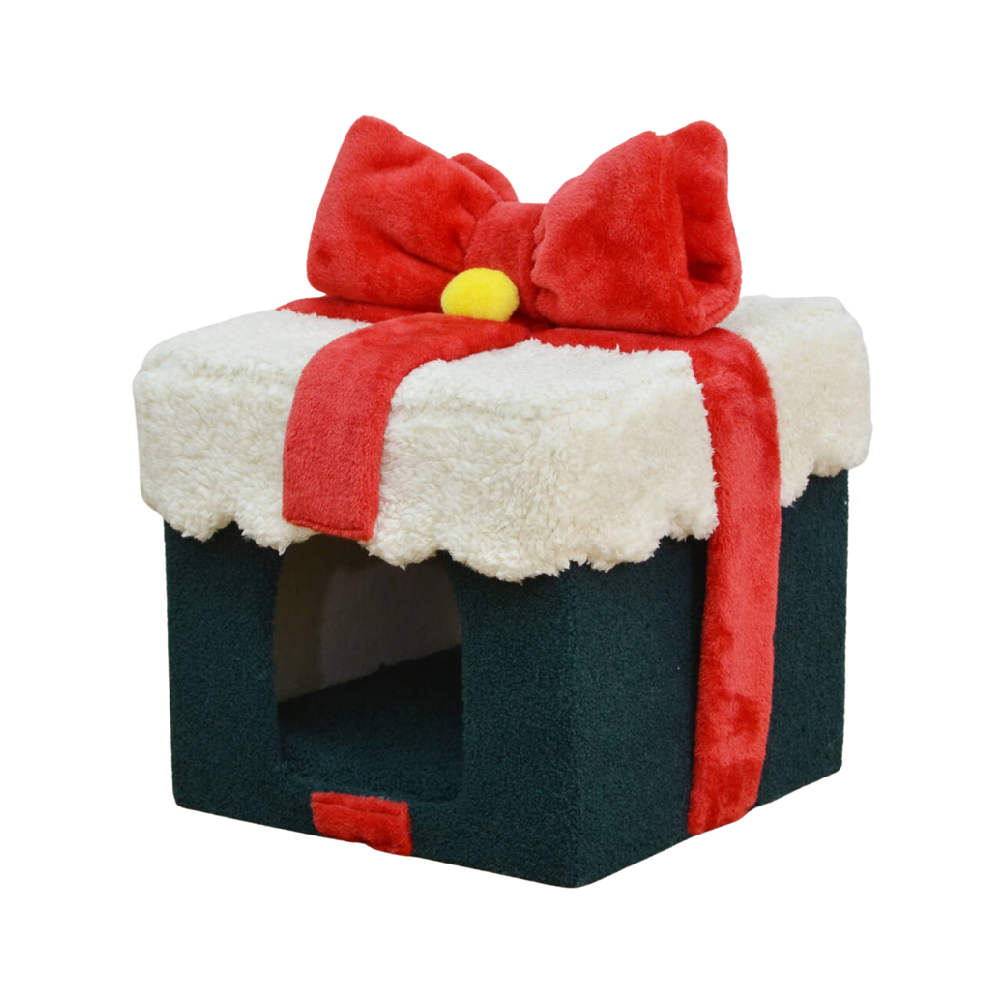 Make your cat’s holiday extra special with the Catry Christmas Cat House—a cozy hideaway designed to look like a festive gift box! Perfect for the season, it adds charm to your decor while giving your cat a comfy place to play and rest.