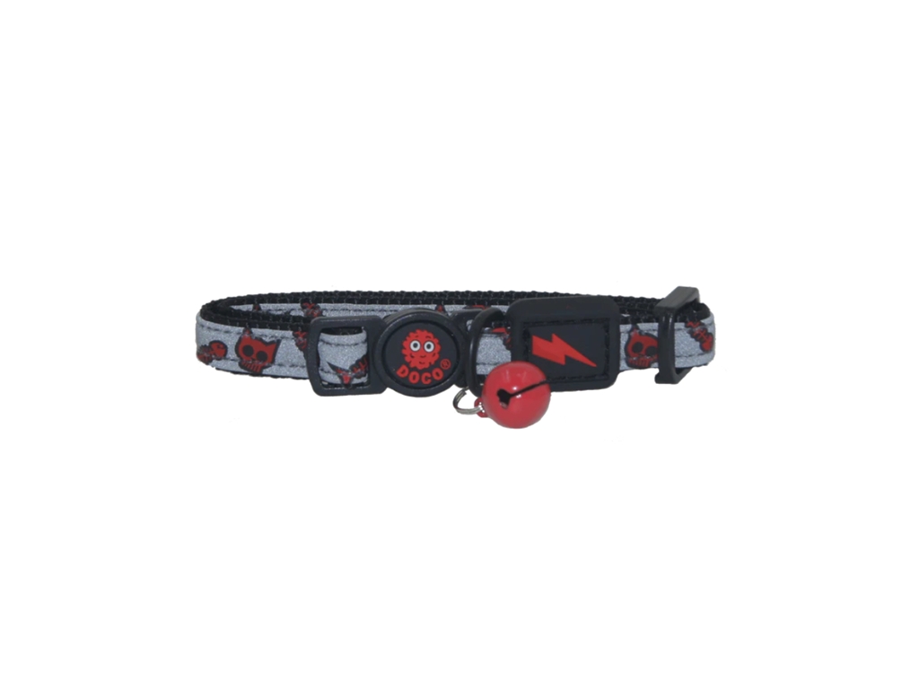 DOCO® LOCO Cat Collar with Safety Buckle are constructed with HIGH quality fun design printed heat transfer sublimation webbing. Collars provides a comfort fit between your cat’s collar and neck. Collar has safety release break away plastic buckle and tri-glide for an easy fitting on your cat. Heavy-duty stitching for lasting quality, Welded Metal D-Ring for attaching for the optional ID attachment for your cat’s tags.