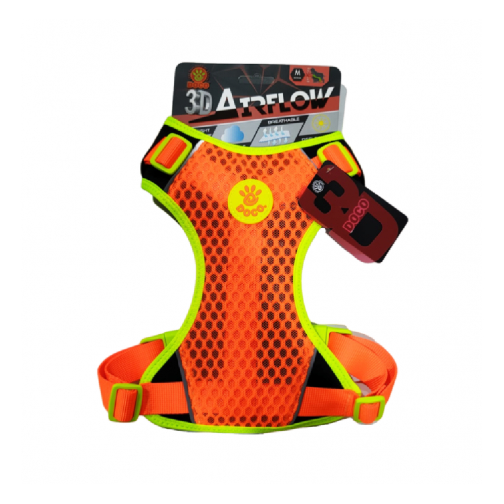 DOCO® 3D AIRFLOW FOAM HARNESS Most Comfortable Harness Ever! Consturcted with Airknit® VERTEX shell and lightweight Airform® Compression Technology. Interior Foam designed to let air flow through. This harness has 3D hugging effect on your dog with padded areas that decrease strain. Pearl Gun Metal fittings are salt water tested for corrosion.