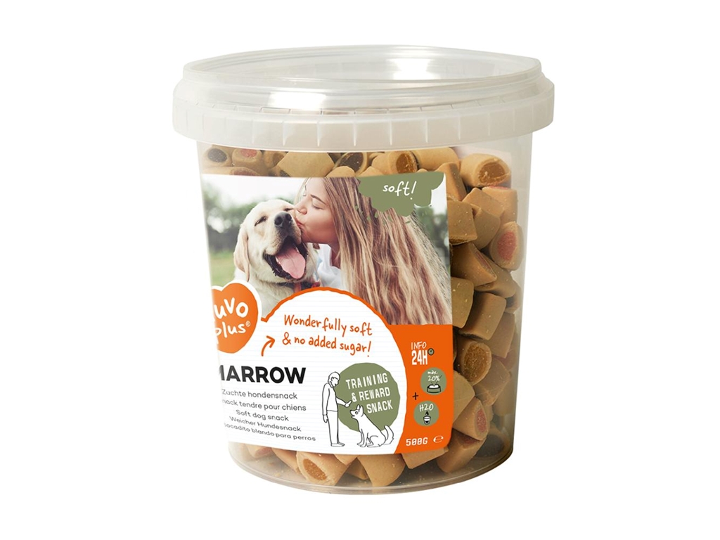 Keep your dog happy and motivated with Duvo+ Soft! Marrow snacks! These soft treats are perfect for training and rewarding both puppies and adult dogs. Made in Belgium, they feature high-quality ingredients and contain no added sugars.