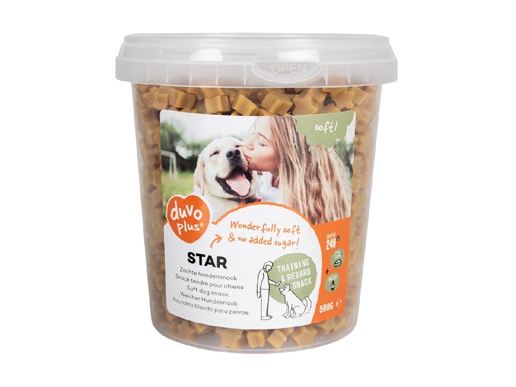 Duvo+ Soft! Star snacks are the perfect way to reward your furry friend during training! Designed for both puppies and adult dogs, these soft treats are crafted in Belgium with high-quality ingredients and contain no added sugars.