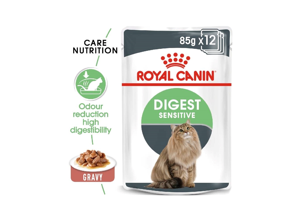 ROYAL CANIN® Digestive Care in Gravy is a nutritionally complete and balanced formula specially designed to help support healthy digestion. Thanks to its precisely balanced nutrients, this formula also helps to support healthy stool quality.ROYAL CANIN® Digestive Care has proven results. Our study* showed that participating cats achieved over 95% healthy stool quality in just 10 days of being fed with the Digestive Care nutritional programme (combining both the dry kibble and wet food formulas). ROYAL CANIN® Digestive Care is also available in loaf, or as a dry kibble diet. A mixture of both wet food and dry food provides the variety cats love. *Royal Canin internal study