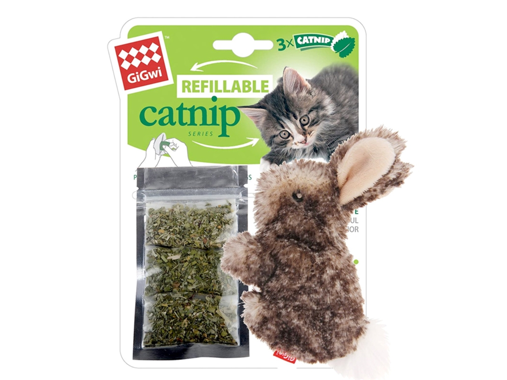 GiGwi Rabbit Fluffy Plush Cat Toy with 3 Refillable Catnip Bags