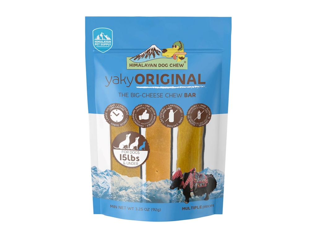 Himalayan Dog Chew Small is the original® long-lasting, hard-smoked cheese chew your dog knows and loves in a multi-sized pack. It is created using an ancient recipe and traditional methods with yak and/or cow milk. Dogs must work the end of the treat for hours, softening it with their mouths before small parts of it can be slowly chewed off. When you give a Himalayan Dog Chew® Small treat to your dog, you know that you are providing them with a high-quality chewing experience.