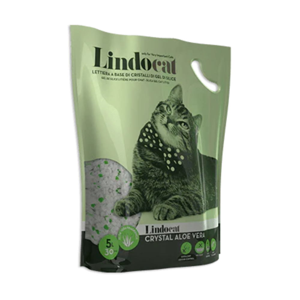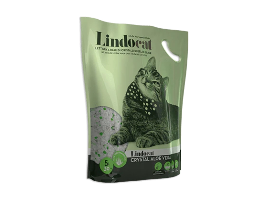 Lindocat Crystal Aloe Vera is an ultra–absorbent silica gel litter that releases a pleasant Aloe Vera fragrance. Thanks to the exceptional absorbency of its crystals, it is able to instantly trap all liquids and odours, in addition to drying out solid waste to make it easier to remove.