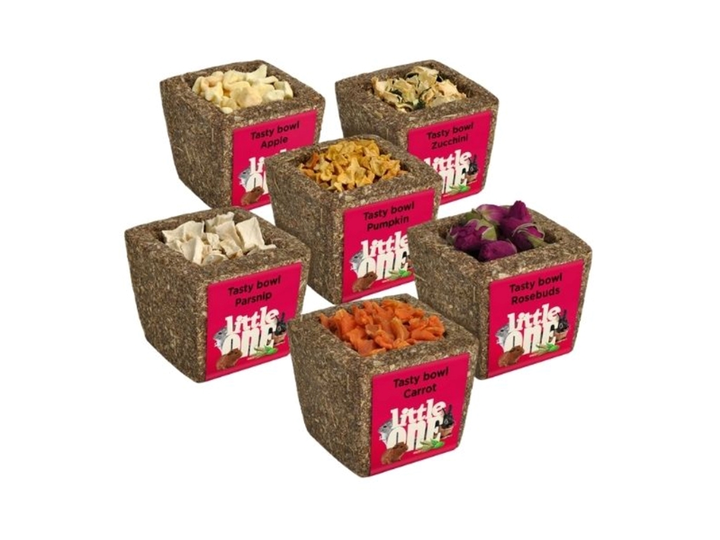 The Little One tasty bowl made from meadow grasses is a treat-toy filled with one of six tasty and beneficial ingredients.