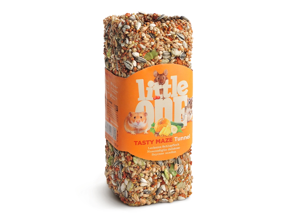 Little One “Tasty maze” tunnel will become a wonderful toy. Pets will find that crispy corn flakes, pieces of carrots and grains taste so good and the tunnel-like shape of the toy will keep the little friend busy for a long time. For hamsters, mice and gerbils. Complementary feed.