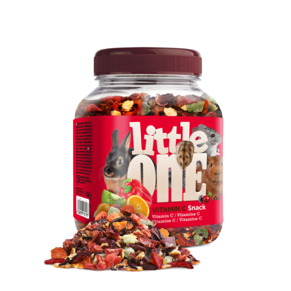 Little One snack «Vitamin C»Guinea pigs, chinchillas and other pets have a special need for vitamin C. Guinea pigs cannot synthesize the vitamin on their own, so they have to get in it sufficient quantities from their diet. Little One Vitamin C is a mix of berries, fruit, and vegetables with the maximum vitamin C content.
