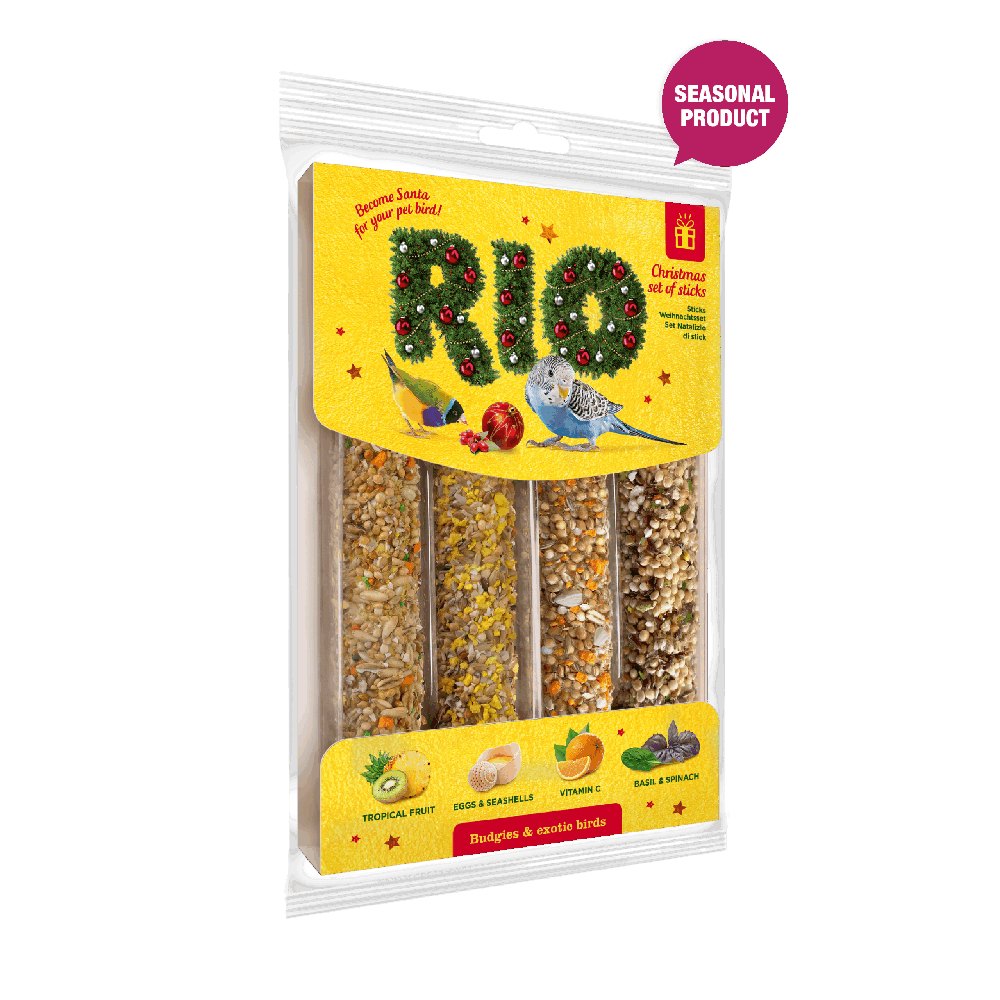 The RIO Christmas Set of sticks was developed especially for budgies and exotic birds and includes 4 deliciously flavoured oven-baked sticks with a crunchy texture. A gift like that will definitely fill the pet birds’ life with fun and joy and provide a great opportunity to discover new tastes.