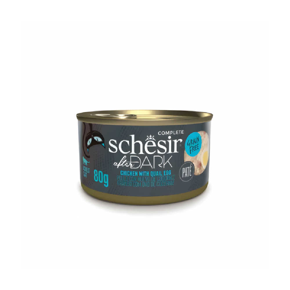 Schesir After Dark is the range of minimally processed, complete and balanced wet foods with a high protein content, for cats who love the taste of meat and innards. A ground pâté full of protein, based on real chicken, together with tasty and nourishing chunks of heart, liver and gizzards and delicious duck