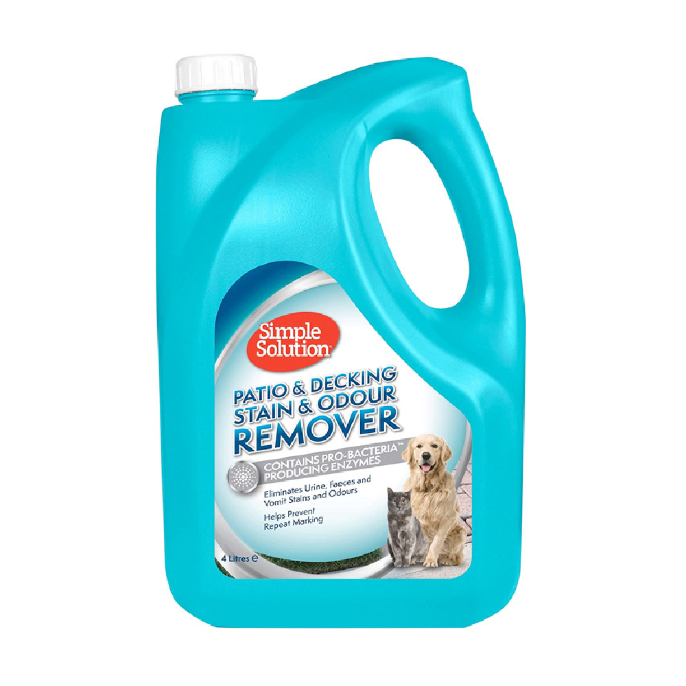 Simple Solution Patio & Deck Outdoor stain & odour remover instantly neutralizes dog and pet waste odours like urine and faeces and is completely safe to use around pets and children