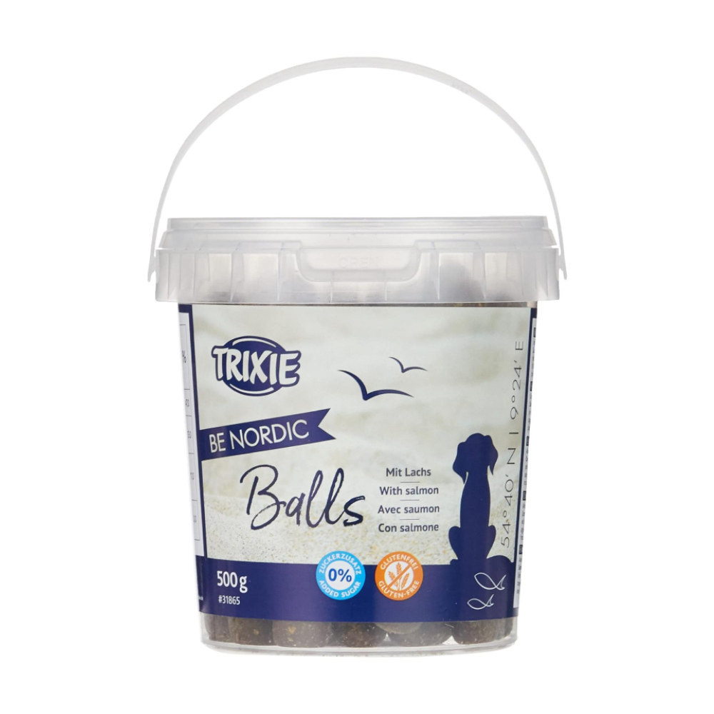 There is a huge choice of TRIXIE dog snacks. In Premio quality, we spoil your dog with top-grade meat of chicken, duck, beef, lamb, or rabbit along with a whole range of delicious ingredients such as fish, rice, and apple. The Trixie BE NORDIC Salmon Ball Treats are enriched with natural Omega 3 and Omega 6 fatty acids, which decrease inflammation throughout the body and improve skin coat conditions.