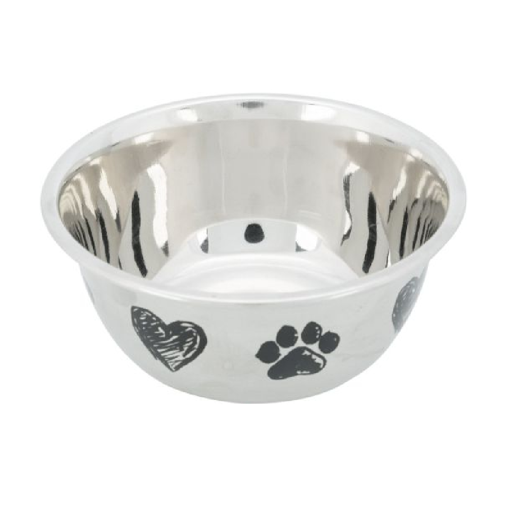 This 500 ml stainless steel dog bowl features a charming paw and heart design. It is rust-resistant, durable, and easy to clean. Perfect for small to medium dogs, it provides a safe and hygienic way to serve food or water. Its fun design adds style to any feeding area.